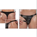 Tanga color negro efecto vinilo mate. Elástico con licra para un ajuste perfecto al cuerpo. Incluye cadenita. 90% poliéster, 10% elastano. Talla única. Tiempo de entrega ca 15-20 días.